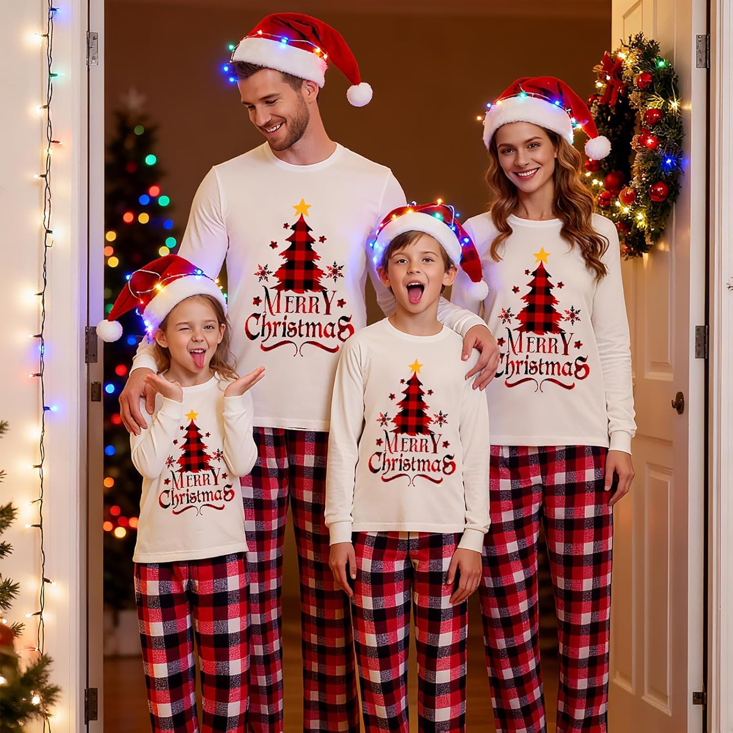 OAKFashion Christmas Pajamas for Family, Xmas Pajamas Family Christmas Pjs Matching Sets Holiday Nightwear Jammies